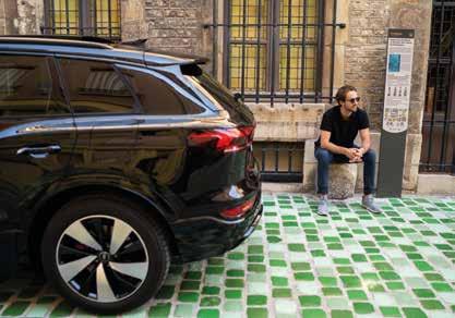Pour la séance photo, nous nous sommes arrêtés en plein centreville. Rue de Tambour, les passants nous regardent. Mais qui sont ces trois personnes avec une voiture, des caches sur les plaques d’immatriculation et des appareils photo ? Cet homme blond et élancé est-il célèbre ? Et cette voiture… un passant portant deux grands sacs en provenance d’une boutique de marques de créateurs s’arrête. « Elle est très belle la nouvelle Audi Q6 e-tron, elle fait très sportive, surtout à l’arrière ! » Bavardages, Stanislas répond et débat au sujet de la ligne du véhicule, car voici quelque chose qu’on ne peut lui retirer : cette voiture a du chien ! Nous l’avons même verrouillée et déverrouillée à plusieurs reprises uniquement pour admirer les signatures lumineuses au niveau de l’éclairage extérieur. Ne pas penser à K-2000 nous est impossible, mais dans un scénario où Michael Knight serait plutôt un James Bond. Cependant Stanislas, notre spécialiste des fusées, est catégorique, pas d’armes secrètes pour l’Audi Q6 e-tron, si ce n’est son charme.