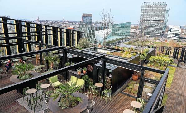 Une vue imprenable sur Lille à 40 mètres de haut : c’est le secret bien gardé de la terrasse du restaurant MESA. Dominant le quartier d’affaires, au neuvième étage du bâtiment strié d’or qu’est le ShAKe, ce rooftop végétalisé est le plus haut de la ville. Mais sa vue panoramique à couper le souffle n’est pas son seul atout. Cocktails raffinés, ambiance vibrante et clientèle chic : tous les ingrédients sont réunis pour faire de cette adresse élégante un lieu prisé pour siroter un verre au coucher de soleil ou même dîner l’été. Sur cet extérieur exceptionnel veille un véritable olivier de 120 ans, comme le totem de ce qui est souvent décrit comme un « jardin suspendu ». Un spot dépaysant, parfait pour savourer Lille autrement. 612 rue de la Chaude Rivière à Lille. Du lundi au samedi, de 12 h à 14 h 30 et de 17 h à minuit (2 h les vendredi et samedi). Fermé le dimanche. mesa-lille.com