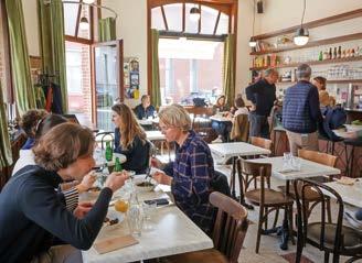 « Je trouve la déco hyper soignée et cosy. Je me verrais bien venir ici pour travailler. » De fait, pas mal d’ordinateurs sont ouverts autour de nous. Des couleurs enveloppantes, du mobilier en bois, quelques objets insolites comme cette échelle de meunier suspendue… Ce café très central est un vrai refuge qui renferme une petite bibliothèque. Lire sur place, emprunter, acheter… tout est possible. Des ateliers créatifs y sont régulièrement organisés, tout est sur le site.