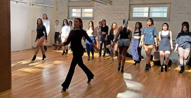 Un cours de heels ça commence comme n’importe quel cours de danse par un échauffement. Dans le groupe du samedi midi à l’école de danse Crasto à Lille, le groupe d’une trentaine de danseurs est mixte. Pour les coacher, Bérénice.