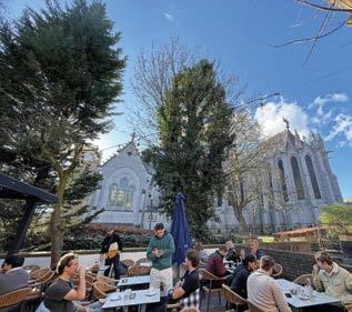 Depuis la façade place Louise-de-Bettignies, on ne devine pas le panorama étonnant qu’offre la terrasse nichée à l’arrière de L’Imaginaire depuis les années 1980. Au moindre rayon de soleil, quelle que soit la saison, certains profitent de la vue sur l’arrière de Notre-Dame de la Treille avec un plat brasserie pris rapidement le midi. D’autres prennent leur temps l’après-midi avec un café ou le soir en dégustant une bière ou un cocktail, notamment le Maya et le Tour du monde qui remportent un franc succès, comme le Cléo en version sans alcool. Avec, à partir du printemps, des tapas proposés en soirée.