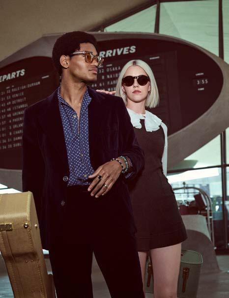 Oliver Peoples revives the golden age of travel in Nineteen Sixties, a campaign that evokes the glamour of air travel typical of that decade. The campaign marks the debut of the two new models in the retro-inspired Nineteen Sixties collection of the same name, Cassavet and Merceaux. Cassavet sports an oversized rounded shape with a key bridge. The acetate shows a deep beveled edge, while the filigree plate, hinge and core are inspired by the golden engravings typical of antique leather-bound books. Merceaux applies the same features to an original square silhouette.