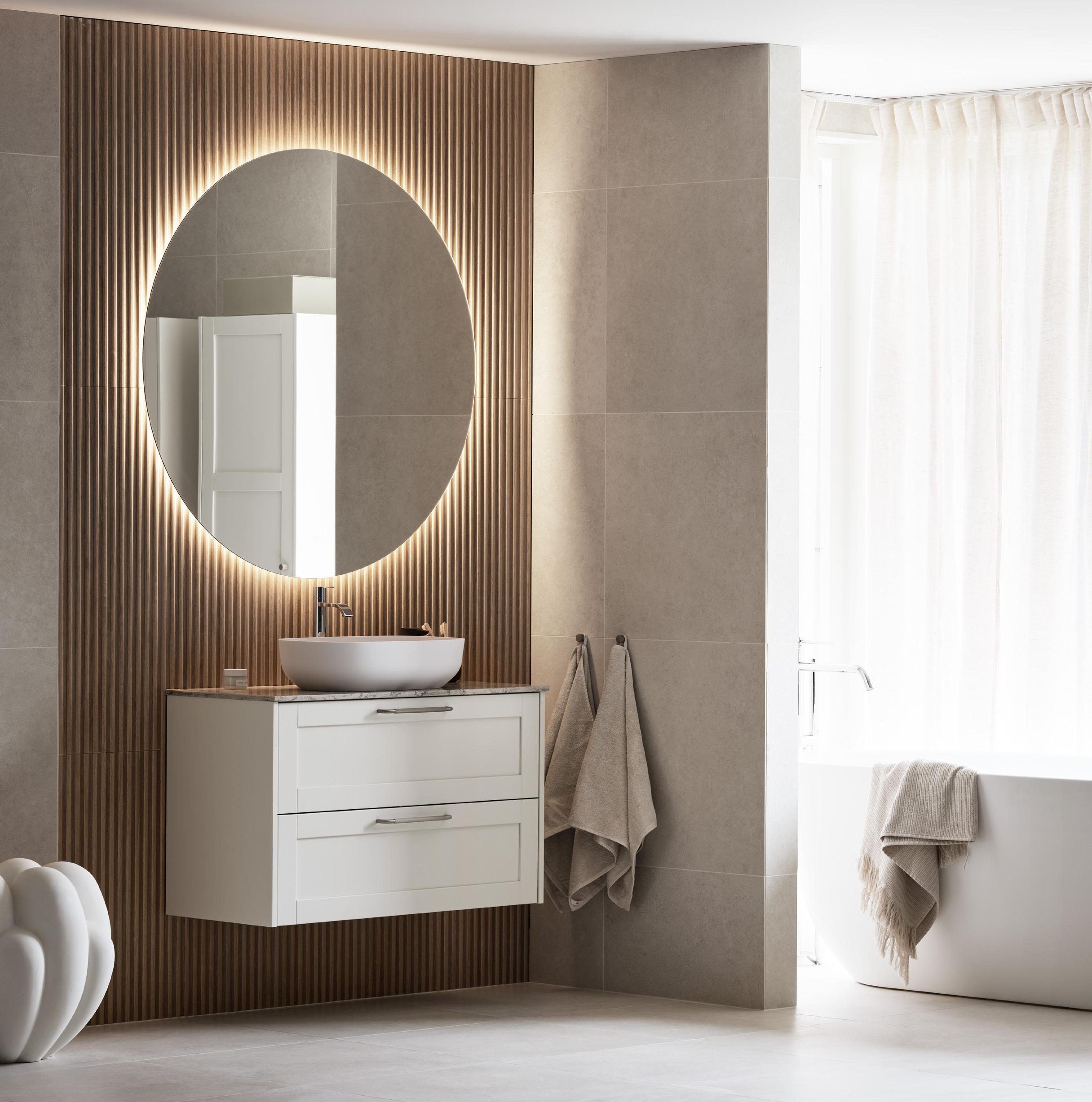 Skap ditt personlige baderom. Velg alt fra farge og dører til blandebatterier, håndtak, belysning og speil. Se mer på side 108–119.