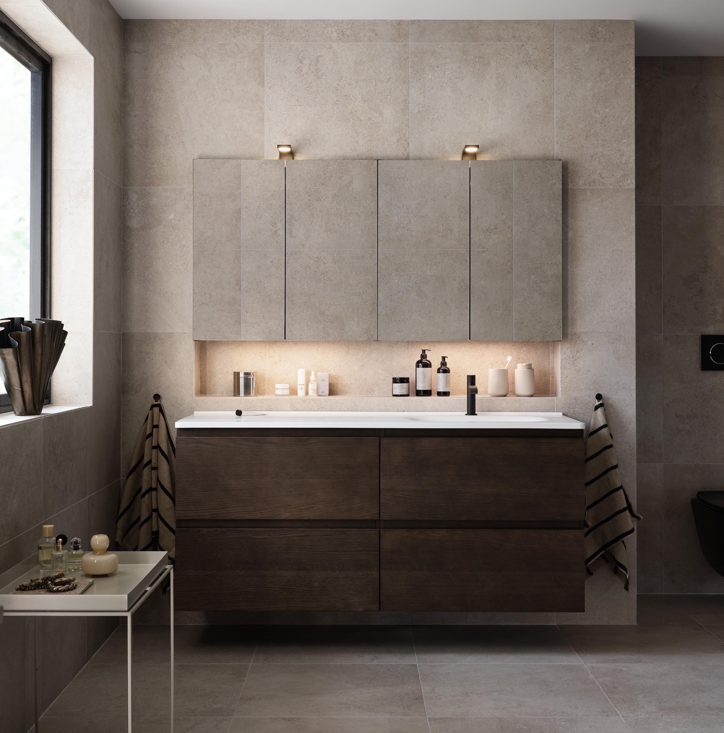 Vi tilbyr et gjennomtenkt sortiment for baderomsinnredning og oppbevaring. Våre design hjelper deg med å skape en stilfull helhet, uansett størrelse eller funksjon på badet ditt.