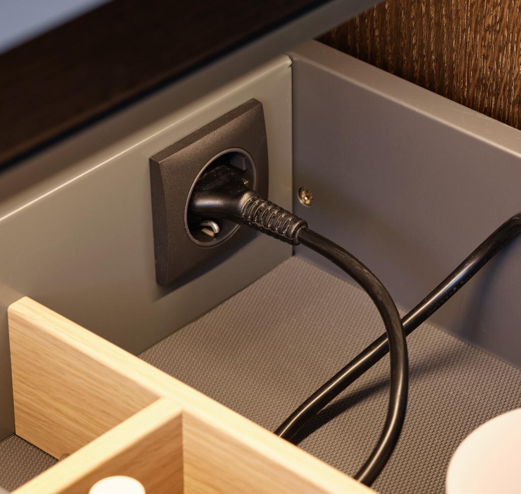 Som tillegg er det en 230V-kontakt i skuffen under servanten.