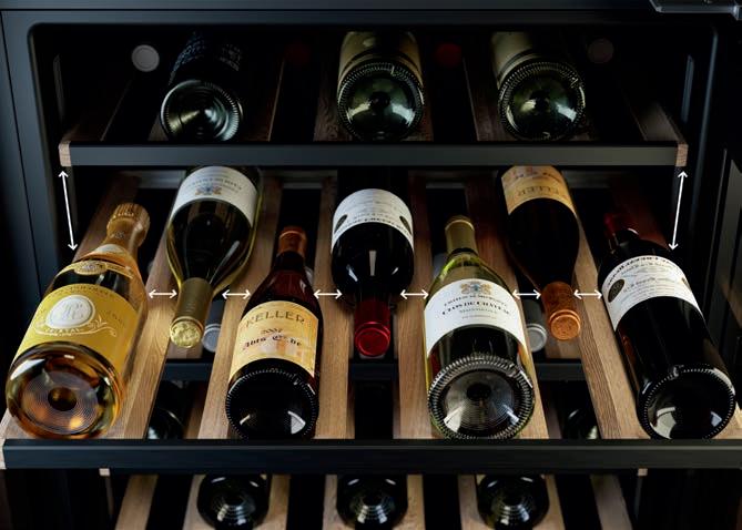 Perfect Shelves Designad till att förvara alla typer av flaskor 2 trähyllor med teleskopskenor Nettovolym: 49 l