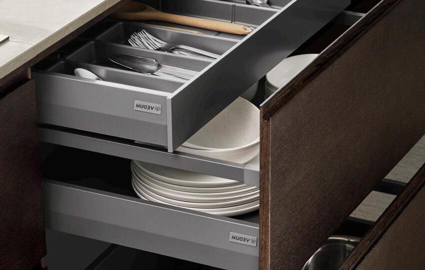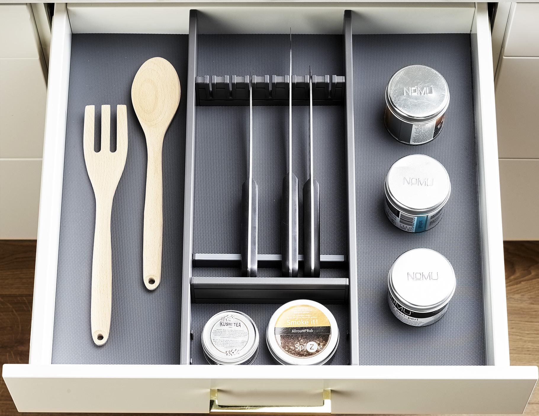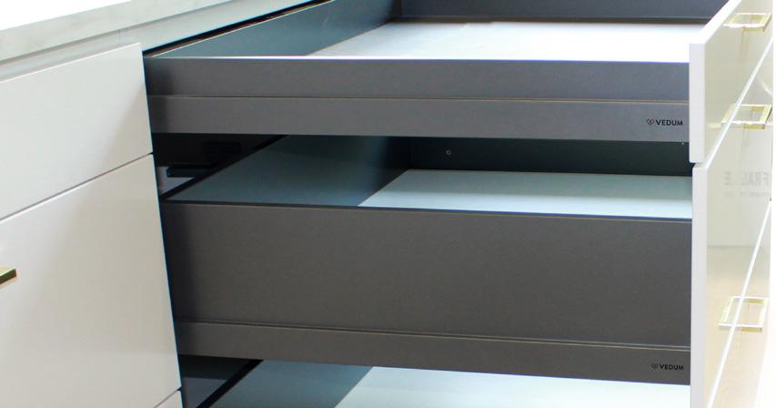 Antracitgrå fullutdragslåda i plåt som används från våren 2025.