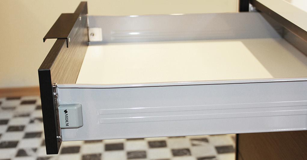 Vit fullutdragslåda i plåt som används från hösten 2016.