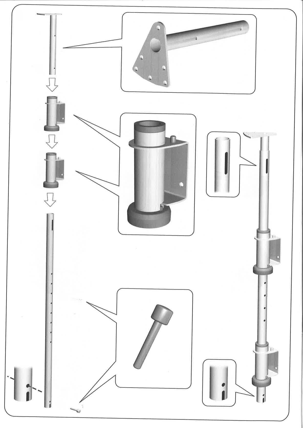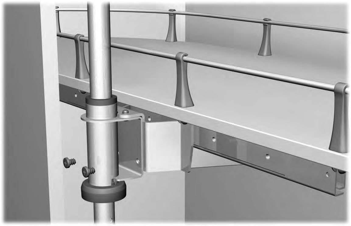 7. Trä röret igenom fästet och trådhyllorna. Notera! Röret ska inte gå att vrida på om det sitter rätt.