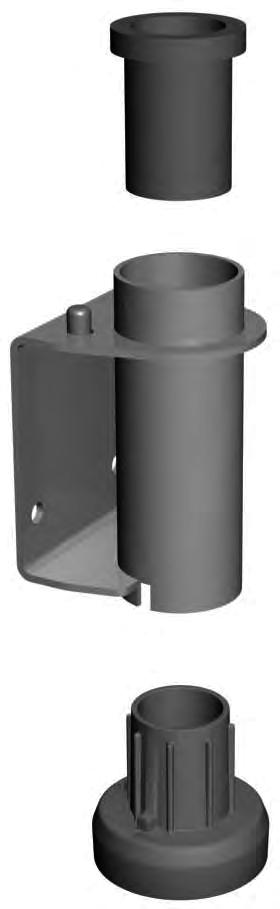 5. Trä i stolpen underifrån i vinkeljärnet och tryck ner stolpen i stolpfästet.