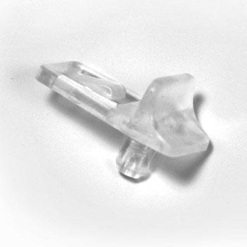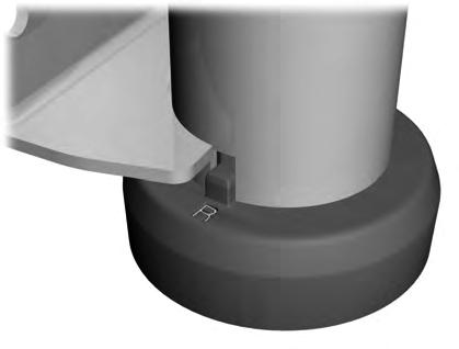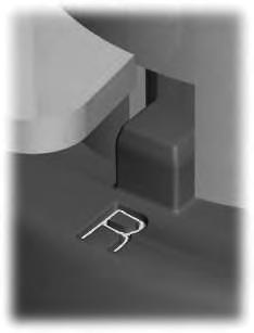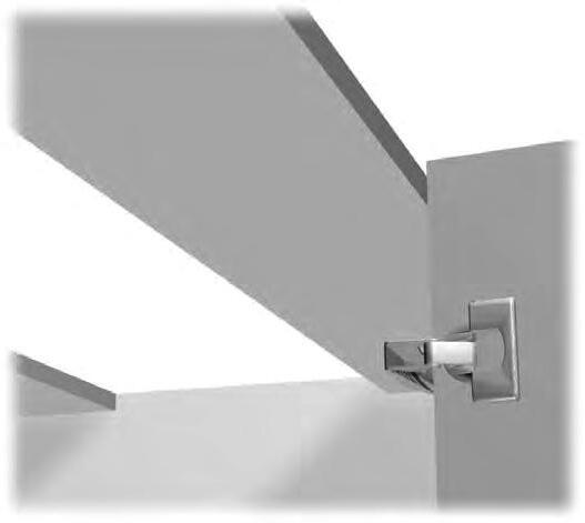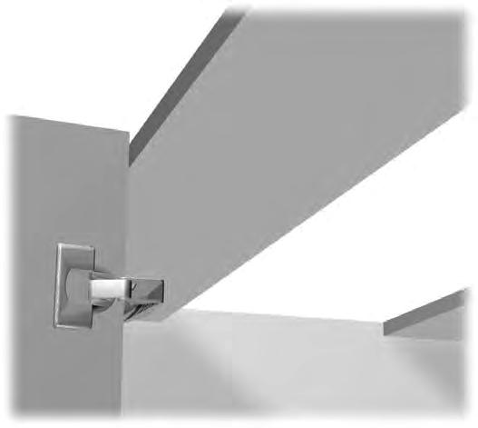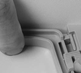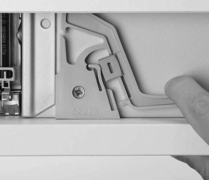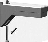 7. Montering av dämpare Softstopp. Softstopp dämpare finns i höger(art.nr. 30212) eller vänsterutförande (art.nr. 30213) som dämpare för hyllplan Le Mans (Cajun). Bild nedan visar Softstopp i högerutförande. Softstopp levereras monterade från fabrik på hörnskåp Cajun. Softstopp finns som löst tillbehör för komplettering av Le Mans inredningar som inte haft Softstopp som standard. Le Mans hörnskåp som kan kompletteras med Softstopp är skåp med art.nr: 103310, 103312, 103210, 103212, 103110 och 103112.