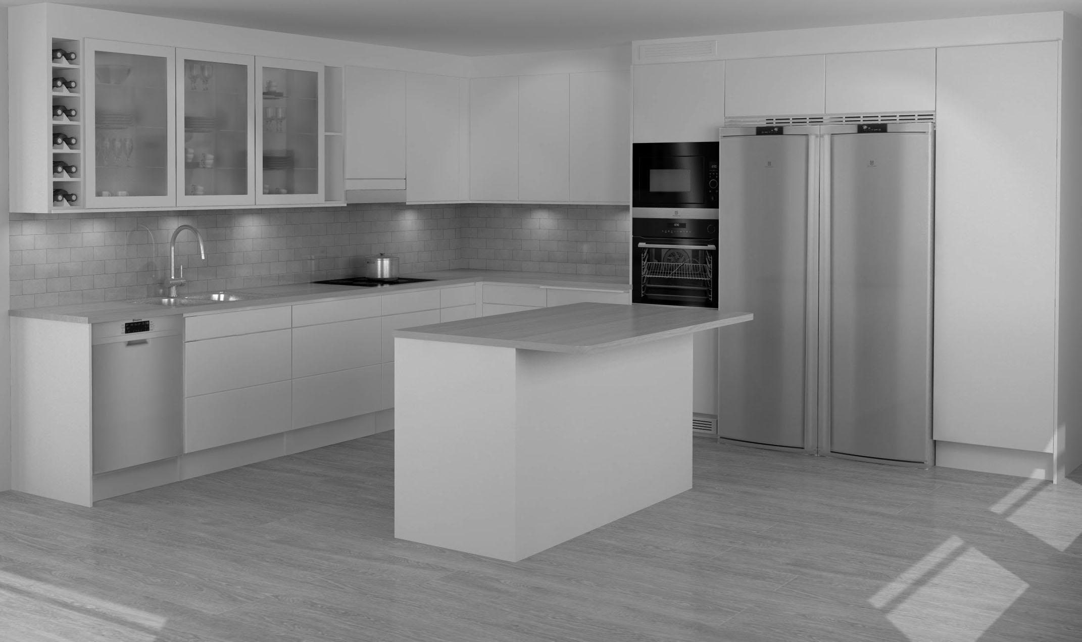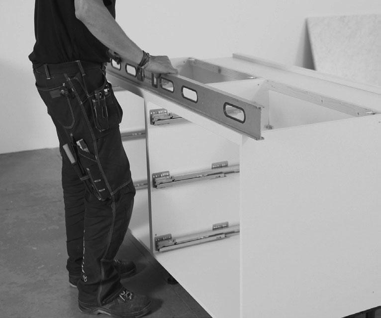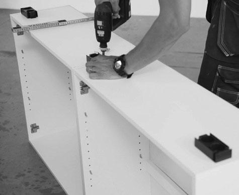 •Märk ut var spis, diskmaskin etc. ska placeras. Notera! Vid högskåp för integrerad kyl/frys, ska ingen stödregel monteras under urtaget i skåpsbotten för ventilation.
