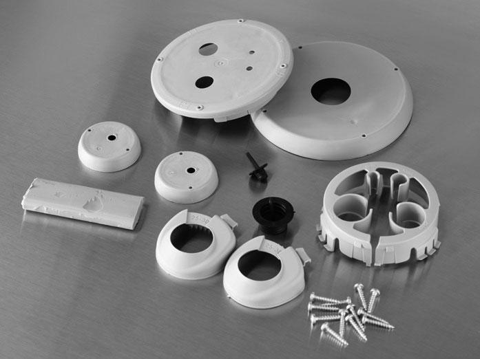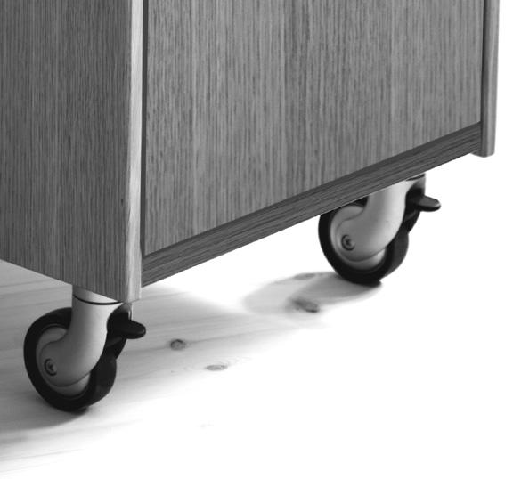 • Skyddshjul som monteras på vikluckan till hörnbänkskåp art.nr. 101618, 101818, 101918, 108018, 108118 ,108218, 111018, 11118, 111318, 111418 och 111518 för att hindra luckan från att gå emot angränsande luckor vid stängning. Monteras tillsammans med mottagarbleck i sidan på stommen.