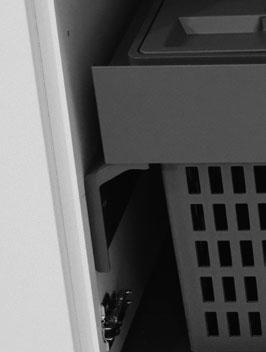 1. Vi rekommenderar montering på gångjärnssidan i stommen så källsortering med eventuell påhängsram inte riskerar ta emot luckan när källsorteringen dras ut (bild visar Sarek bred art.nr. 30882 för montering på vänster sida i skåpet).