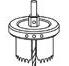 2. Montering av stolpfästet i botten. Stolpfästet har en centrumtapp undertill som kräver ett 5 mm hål som är 13 mm djupt. Markera ut 50 mm från skärmens insida och 44 mm från skärmens framkant och borra. Montera stolpfästet med plana ytan in mot skåpets mitt. Montera med tre skruv TKX 4,0x15 mm.