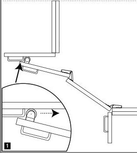 5. Tryck i den nedre sprinten. För ner hållaren så att den låser i sprinten och lägg på hyllplanet. Gör likadant med det övre hyllplanet.