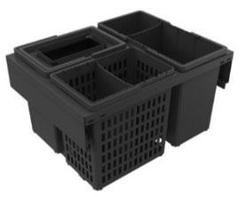 5. Montera hinkarna i ramen. Kompressionslocket är till för avfall i plast som har en tendens att expandera. Avdelaren passar till hinkarna 13 L eller 18,5 L.