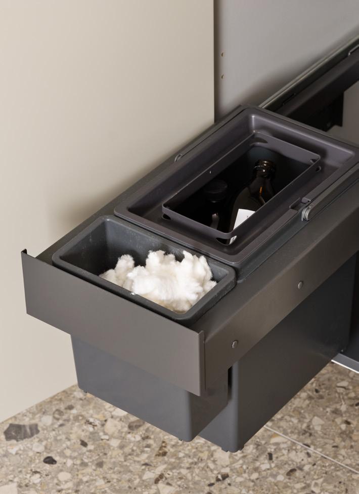 One är ett funktionellt dubbelsidigt plåtlådsystem i antracitgrått med lådor och utdragsenheter som löper på expansionsbeslag och är helt utdragbara, s.k. fullutdrag. Tål 30 kg belastning och har garanterat stabil och säker gång. Den sista delen är självstängande och har inbyggd dämpning. One-lådan levereras med 500 mm djupa lådor i stomdjup 580 mm. Låga lådor har invändig höjd 70 mm. Höga lådor är försedda med reling upp till höjd 170 mm. Botten av 16 mm spånskiva. Fronterna är justerbara i höjd- och sidled. I alla lådor med front i höjd 282/346 mm ingår gummimatta som standard. Lådorna är epoxilackade i antracitgrå kulör. Till lådsystemet finns olika inredningsmöjligheter för rationell förvaring. Diskbänkskåp med tillkommande källsorteringslåda Ängsö ram 2.0 finns endast med Scala-lådan i djup 450 mm. Scala är ett exklusivt designat dubbelsidigt plåtlådsystem i antracitgrått med lådor och utdragsenheter som löper på expansionbeslag och är helt utdragbara, s.k. fullutdrag. Tål 70 kg belastning i diskbänkskåpen och har garanterat stabil och säker gång. Den sista delen är självstängande och har inbyggd dämpning.