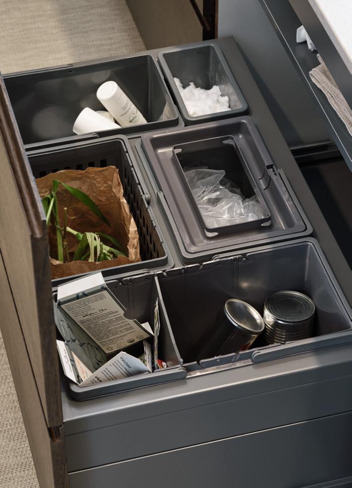 Diskbänkskåpen har bottenskydd av plast. Finns med luckor eller lådor i bredd 600 och 800 mm. Källsortering Sarek finns som tillbehör till diskbänkskåp med luckor. Till diskbänkskåp med fullutdragslåda Scala i bredd 600 och 800 mm tillkommer en ram för källsortering Ängsö med plats för fyra eller sex hinkar (köps separat). Skåpen skall monteras plant för att eventuella läckor skall synas inuti skåpet innan allvarliga skador sker på golv eller bjälklag.