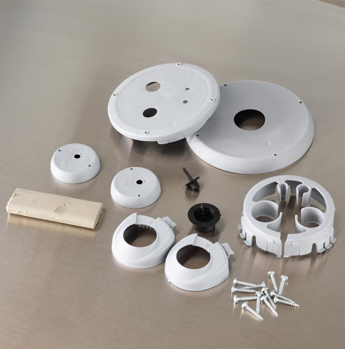 104060 diskbänkskåp, 100460 bänkskåp, 30140 tvättkorg, 2500260 garderob, 102460N bänkskåp med en låda (lådmodul), 3591 dekorsida högskåp, 3581 dekorsida bänkskåp, 41042K sida för ställbar fot, 39238 stödben krom, 3572 vägghylla, 39219 träkonsol och 3861 målad passlist.