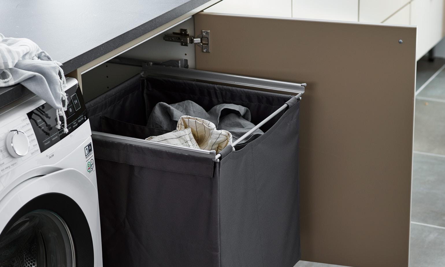 Integrerad tvättkorg.