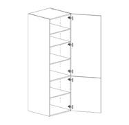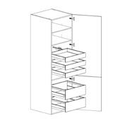 Paket 0602688 för upphöjda vitvaror, 100440 bänkskåp, 104080 diskbänkskåp, 3581 dekorsida bänkskåp, 39238 stödben krom, 3861 passlist målad, 2500660 linneskåp, 2500860 städskåp, 102460N bänkskåp med en låda (lådmodul), 3572 vägghylla och 39009 hyllbärare
