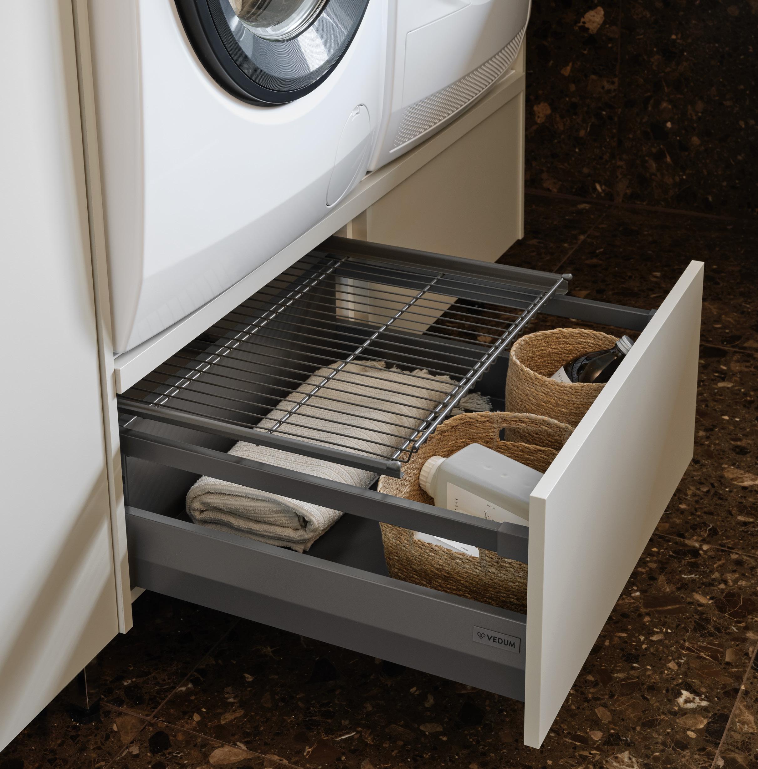 Med Vedums breda sortiment kan du alltid skapa en tvättstuga som passar din stil och lever upp till dina krav på kvalitet och funktion. Välj allt från kulör och material till luckor, bänkskivor, handtag och tvätthoar. Och glöm inte alla smarta lösningar på insidan.