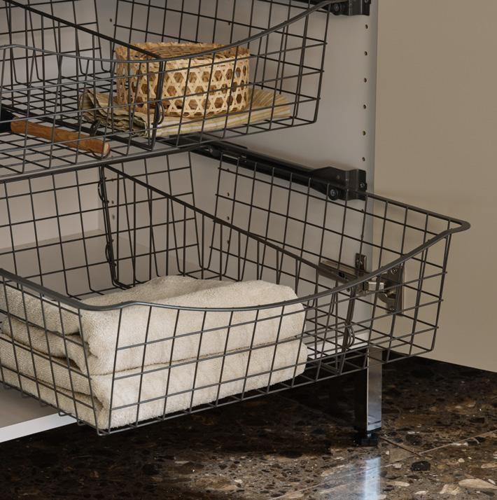 Antracitgrå epoxilackerad tråd som löper på stabila rullskenor med utdragsstopp.