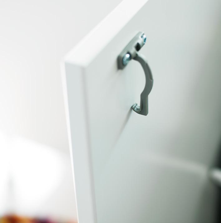 Våra luckor är försedda med gångjärn med inbyggd dämpning. Gångjärnen har 120° öppningsvinkel, är självstängande och helt i metall med clipsfattning. Skafferiskåp med invändiga fullutdragslådor har gångjärn med 155° öppningsvinkel.