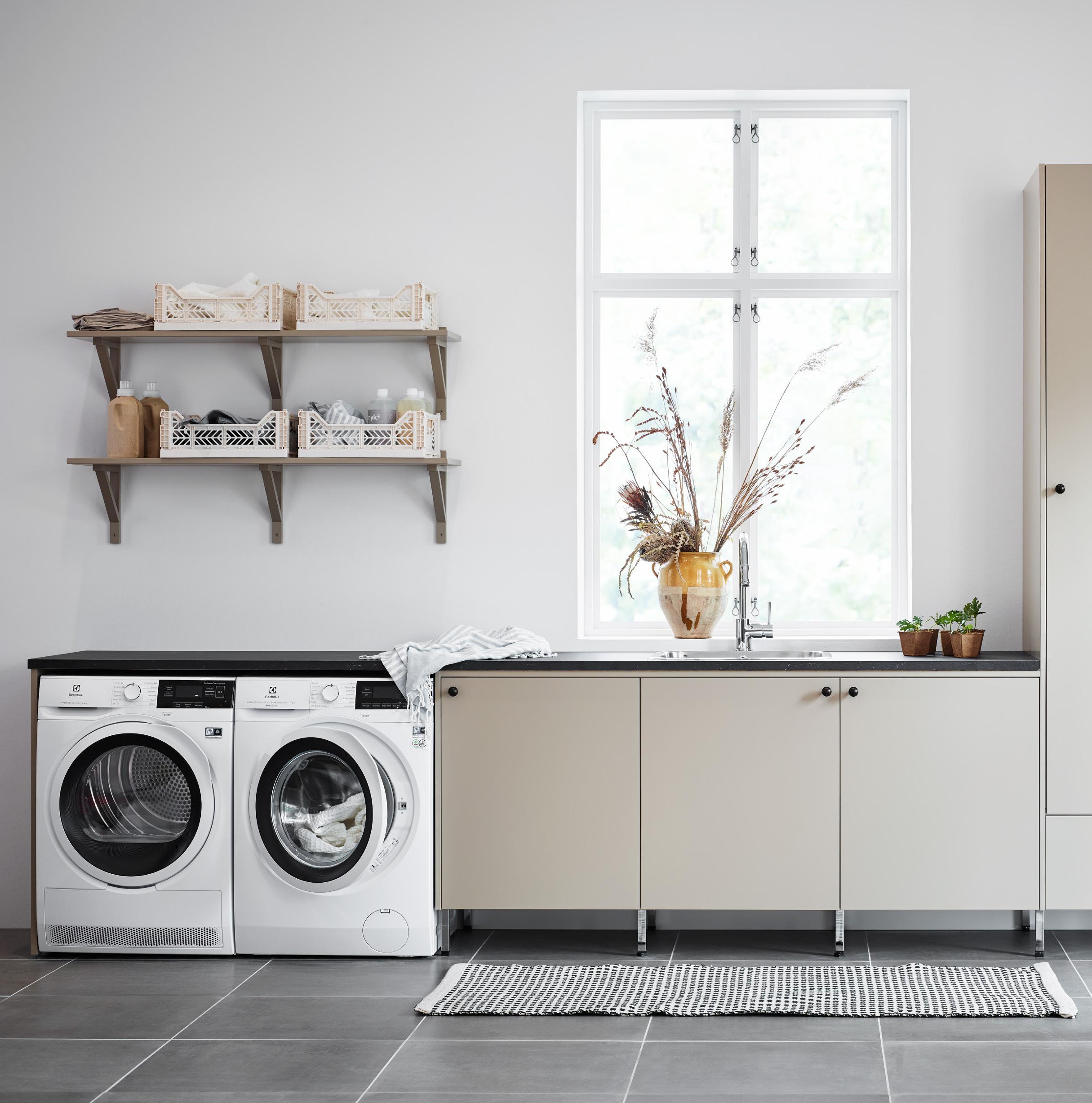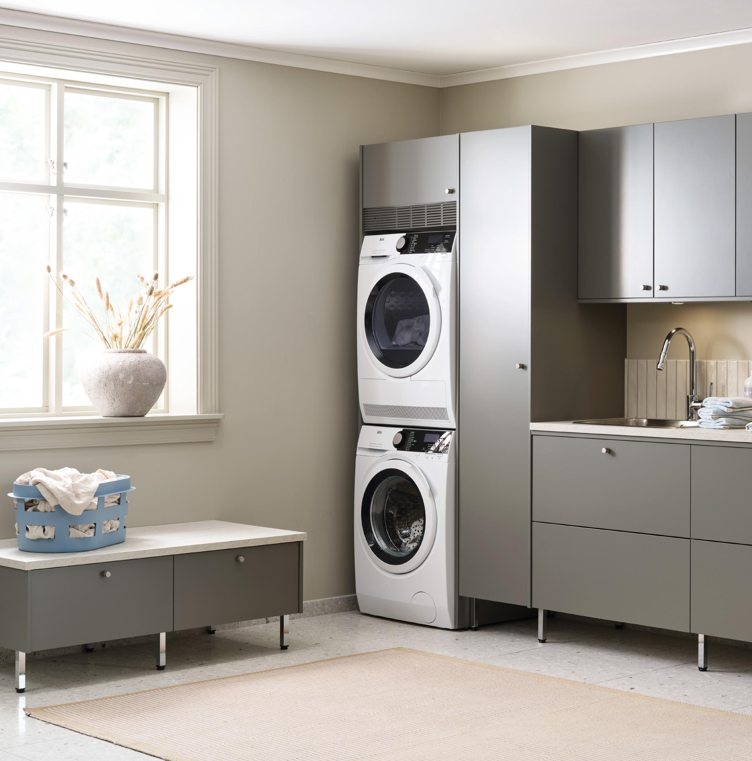 å ta vare på klær og tilbehør. Vårt nye Ax veggsystem og nye skapinnredninger gjør det enklere å organisere, holde orden og finne det du leter etter. Vårt helhetlige sortiment gjør det mulig å skape et enhetlig uttrykk i hele hjemmet – og oppnå en jevn overgang mellom klesvask og oppbevaring av klær. Alt for en mer komfortabel hverdag.