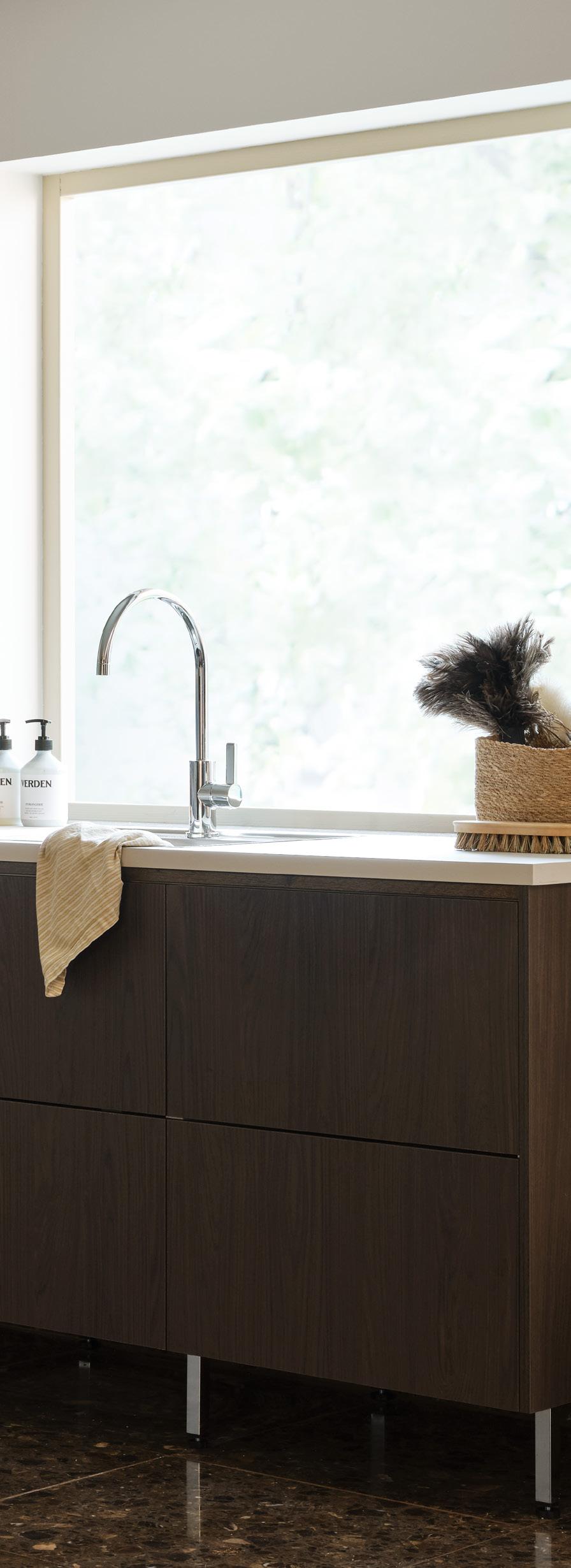 Med Vedums brede utvalg kan du alltid skape et vaskerom som ikke bare passer stilen din, men som også oppfyller dine krav til kvalitet og funksjon. Velg alt fra farge og materiale til dører, benkeplater, håndtak og vaskekummer. Og ikke glem alle de smarte løsningene på innsiden.