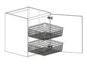 Dører til oppvaskbenkskap er klargjort med barnesikring som standard. Barnesikring fås som tilbehør og kan monteres på alle skuffer. Til oppvaskbenkskap med skuff med fullt uttrekk følger barnesikringer med.