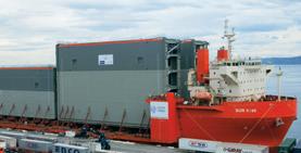alla grandezza e ai pesi eccezionali delle paratoie: issate su carrelli SMTP semoventi di 120 assi e messe in sicurezza attraverso speciali saldature e leganti, le paratoie so no state caricate su navi oceaniche “semi-sommergibili”, lunghe oltre 180 metri e con capacità di peso di 24mila tonnellate.