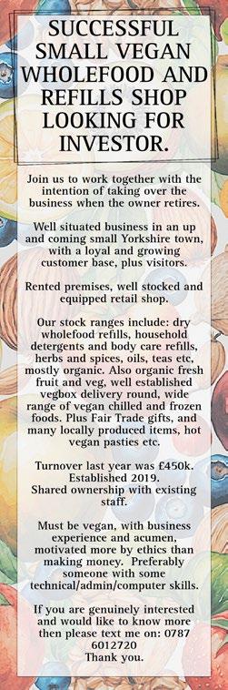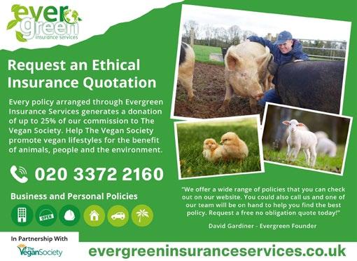 The views expressed in The Vegan do not necessarily reflect those of the Editor or of The Vegan Society Council. Nothing printed should be construed to be The Vegan Society’s policy unless so stated. The society accepts no liability for any matter in the magazine. The acceptance of advertisements (including inserts) does not imply endorsement. Complaints should be made in writing to chair@vegansociety.com or ceo@vegansociety.com or by post. Visit vegansociety.com/complaints-procedure to find out more.