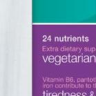 VEG 1 contains the EU recommended daily Nutrient Reference Intakes of vitamins B12, iodine, selenium, D3, B2 and B6 and folic acid. It is available in orange or blackcurrant flavour, in a 3-month or 6-month supply. Visit veg-1.com to explore the range.