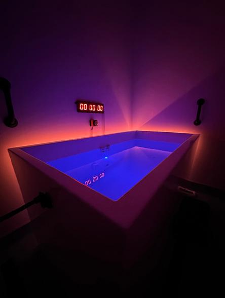 As you lay back, your body feels weightless, as if you're floating on air. The water gently cradles you, and the sensation of floating dissolves the boundaries between your body and the water. The tank is dark, and with no light, sound, or gravity to anchor you, you feel as though you’re suspended in space.