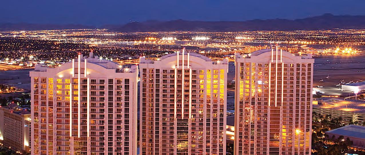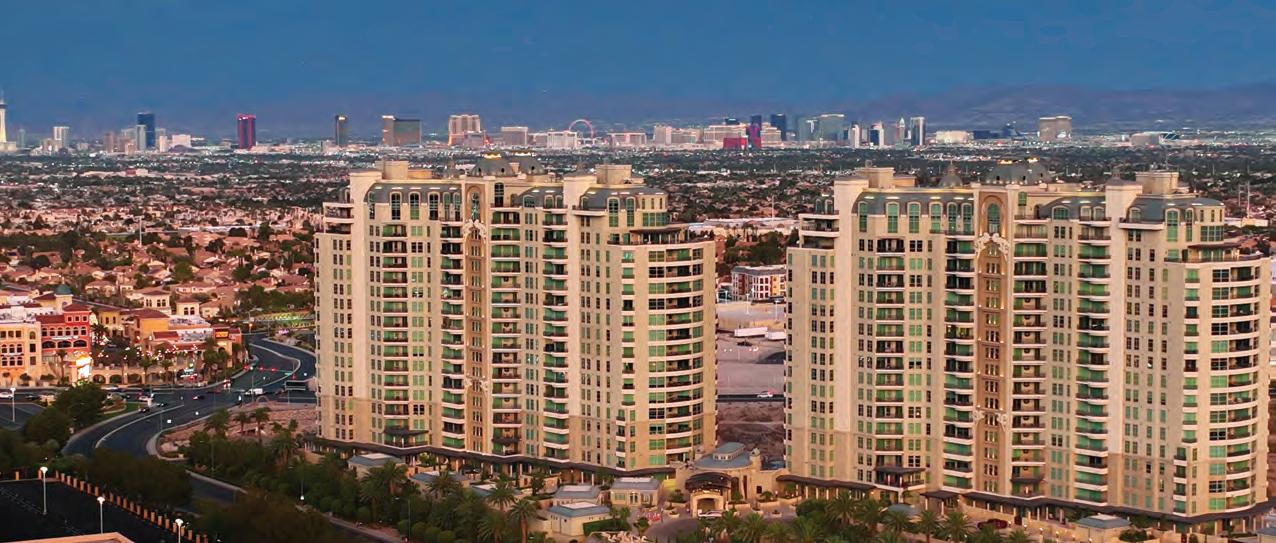 Towering over the Las Vegas Strip like an aqua blue wave, Panorama Towers provides discriminating buyers a unique opportunity to live well in a more intimate environment. Panorama Towers offers a wealth of options in one and two-bedroom residences that range from 750 to 14,000 square feet and offer spectacular views of the Strip to the east and colorful beauty of Red Rock Canyon to the west. Panorama Towers is a world unto itself featuring his and hers spa facilities, a resort style pool with lounge areas, yoga and Pilates studio, indoor racquetball court and, best of all, 24-hour concierge service.