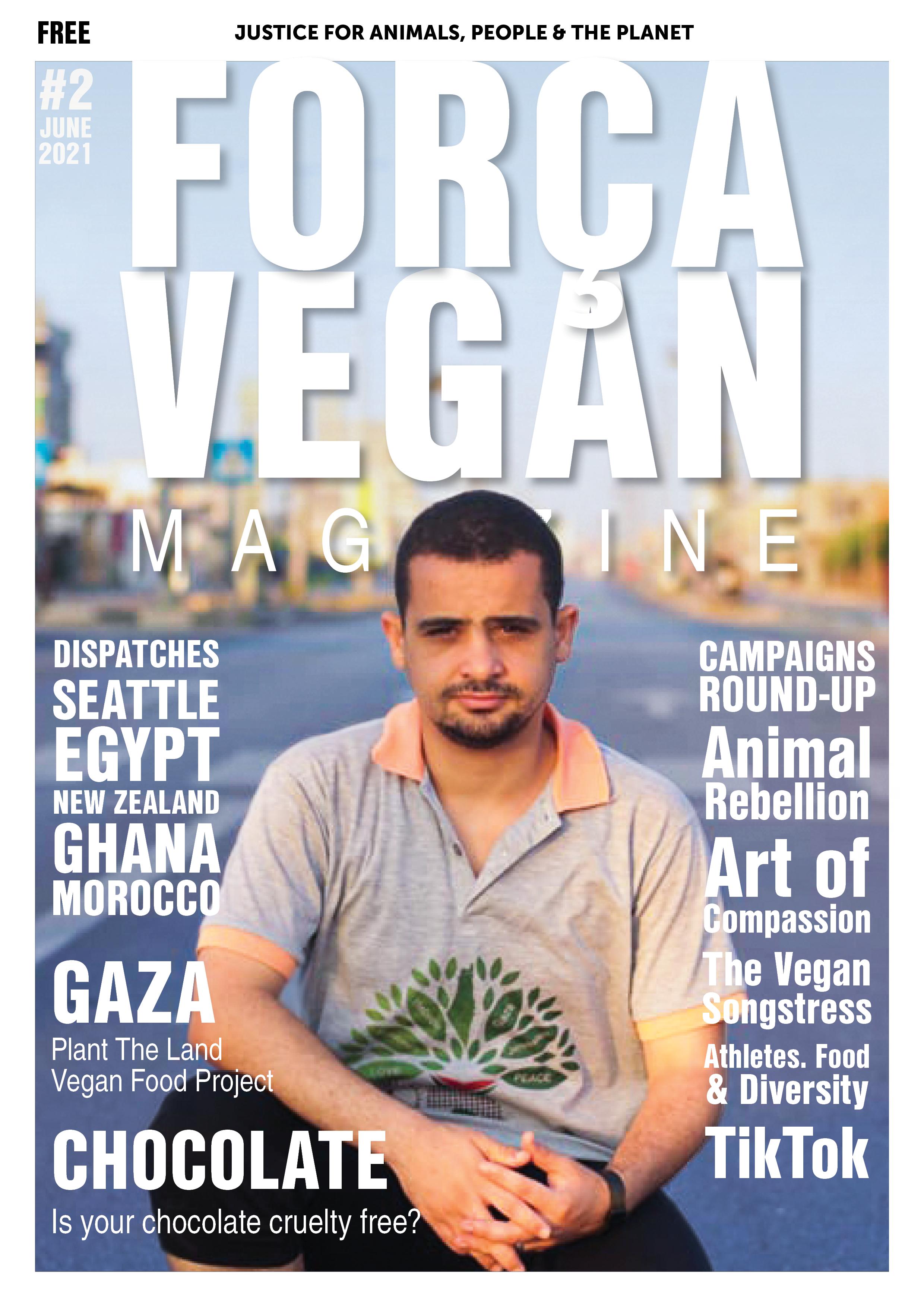 A warm welcome to our readers from across the globe as we bring you our second issue of Força Vegan Online Magazine, dedicated to animal rights activists and vegan outreach throughout the world. Issue 2 doesn’t disappoint, delivering frontline reports from Gaza from the extraordinary Plant The Land Team, plus in-depth interviews with activist and healthcare professional Leila Dehghan, who also presents ‘Athletes, Food, Diversity’, and long term activist Alison Plaumer, recently making the global media headlines with Animal Rebellion. Simohamed Bouhakkaoui updates from Morocco, Maya Cohen – Ronen reports from Wellington New Zealand, Cina Ebrahimi describes first hand some of the recent protests in Seattle, Jenna Kamal brings us news from Dahar in Egypt, Nella Giatrakou features the upcoming Online AR summit in Kent, Roger Yates delves into the world of TikTok and we take time out to visit Tivai and the Vibrant Vegan Society of Ghana.
