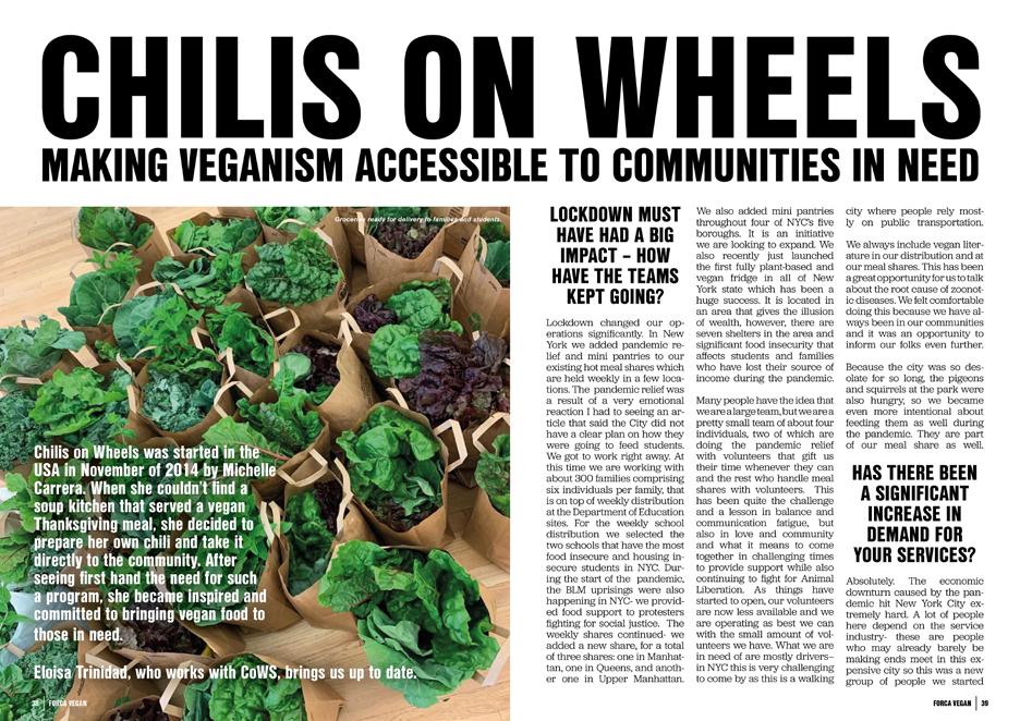 Welcome to Issue One (March 2021) of Forca Vegan – the free online vegan magazine that joins up activists and campaigns across the globe into a glorious celebration of all things vegan. Born into a world emerging from Lockdown and the global COVID Crisis, Forca Vegan brings together a feelgood factor, information, education and a myriad of different voices and experiences from a multitude of global vegan activists. Removing barriers and focusing on solutions, Forca Vegan reflects a living, growing, unfolding history of liberation, understanding and evolution at a time like never before, and at a time like we never needed before. If we are to face the problems that lie in front of us and lie ahead, and change them for the better, we’ll all benefit from listening to a broader vegan fanbase and learning from these experiences, and turning these lessons into effective and consistent education & action.