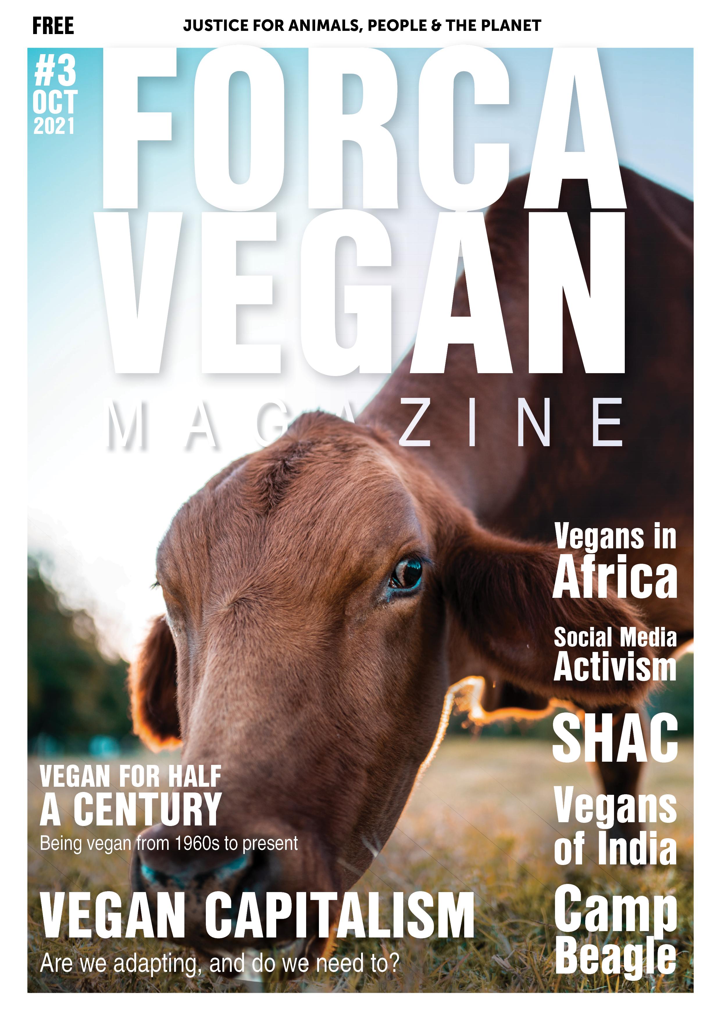 Hello and welcome to Issue 3 of Força Vegan Online Magazine, touching base with the 4 corners of the globe in this post-pandemic epoch overshadowed by the combined threats of climate change, corporate negligence and the consistent annihilation of billions of living beings and vast hectarage of wildlife habitat, confronted by the consistent actions of millions of committed activists and individuals fighting for change, for justice and for liberation.