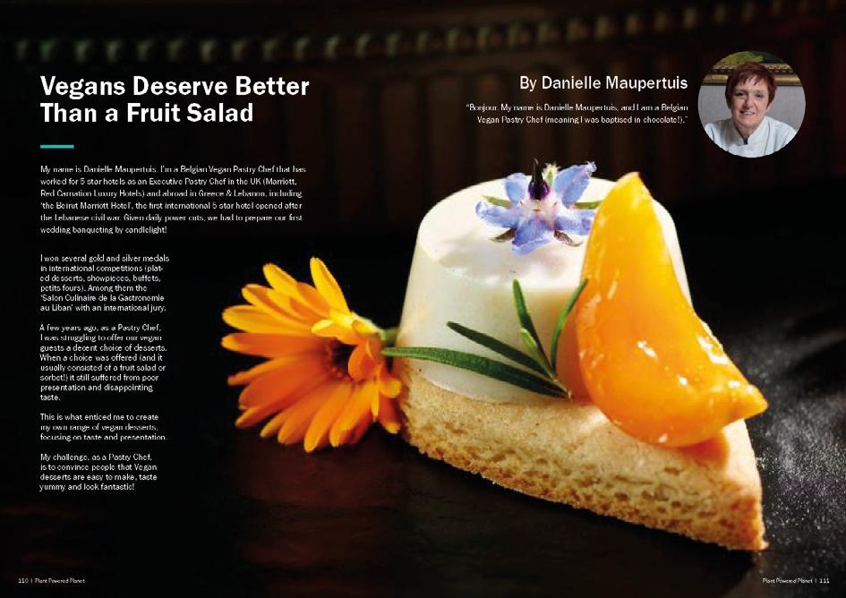 My name is Danielle Maupertuis, I am a Vegan Pastry Chef, Belgian (I was baptised in chocolate!) and worked as Executive Pastry Chef in 5 stars hotels in the UK and abroad. I created a range of vegan desserts, with a special focus upon taste and presentation. Author of a cookbook “Vegans deserve better than a fruit salad” through Olympia Publishers, and tutor at the Veg.Soc. Cookery school. Also, trying to be hepful in this critical situation, I created a YouTube channel “Danielle Maupertuis Vegan Pastry” : short and funny videos with vegan pastry courses for kids. www.freefromdesserts.com