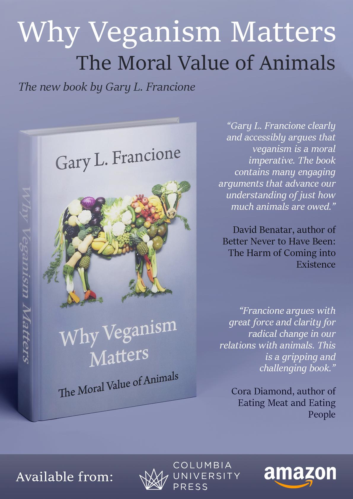 Gary Francione is the Board of Governors Distinguished Professor of Law at Rutgers University, New Jersey, and is visting professor of philosophy at the University of Lincoln, UK. He has authored numerous books and articles on animal rights theory and is regarded as a leading scholar in the field of animal ethics and animal law. He has been a vegan since 1982 based on his acceptance of the principle of ahimsa, or non-violence, and he rejects the use of all animal products, including silk and wool. He is a serious student of Jain philosophy and has written about Jainism and animal ethics.