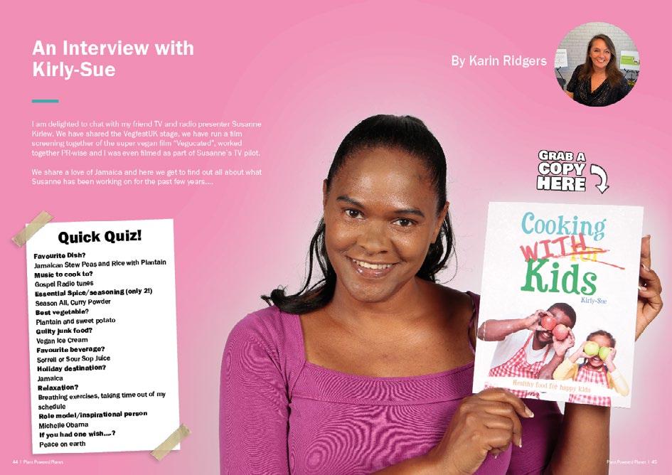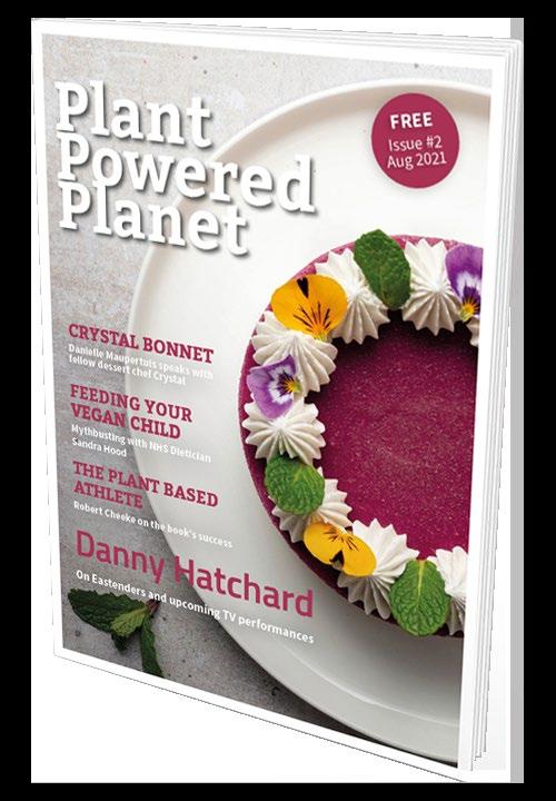 Issue 2 is full up with fantastic in- terviews and focuses on the best the plant based lifestyle has to offer the discerning 21st century individual, who values animals, environment and people when making lifestyle consumer choices. Our regular contributors Tony Bishop Weston (The Vegetable Plot) and Daniele Maupertuis (Vegans Deserve Better than a Fruit Salad) return with their summer special seasonal sprinklings of plant based gold dust, including asking the question ‘Are you eating too much ultra processed vegan pap?’ and a wonderful raw vegan cheesecake recipe, and we were thrilled to catch up with our star 3 guests for issue 2, BodyBuilder Robert Cheeke, Activist Juliet Gellatley and Actor Danny Hatchard.