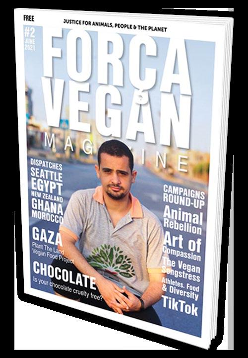 A warm welcome to our readers from across the globe as we bring you our second issue of Força Vegan Online Magazine, dedicated to animal rights activists and vegan outreach throughout the world. Issue 2 doesn’t disappoint, delivering frontline reports from Gaza from the extraordinary Plant The Land Team, plus in-depth interviews with activist and healthcare professional Leila Dehghan, who also presents ‘Athletes, Food, Diversity’, and long term activist Alison Plaumer, recently making the global media headlines with Animal Rebellion. Simohamed Bouhakkaoui updates from Morocco, Maya Cohen – Ronen reports from Wellington New Zealand, Cina Ebrahimi describes first hand some of the recent protests in Seattle, Jenna Kamal brings us news from Dahar in Egypt, Nella Giatrakou features the upcoming Online AR summit in Kent, Rog- er Yates delves into the world of TikTok and we take time out to visit Tivai and the Vibrant Vegan Society of Ghana.