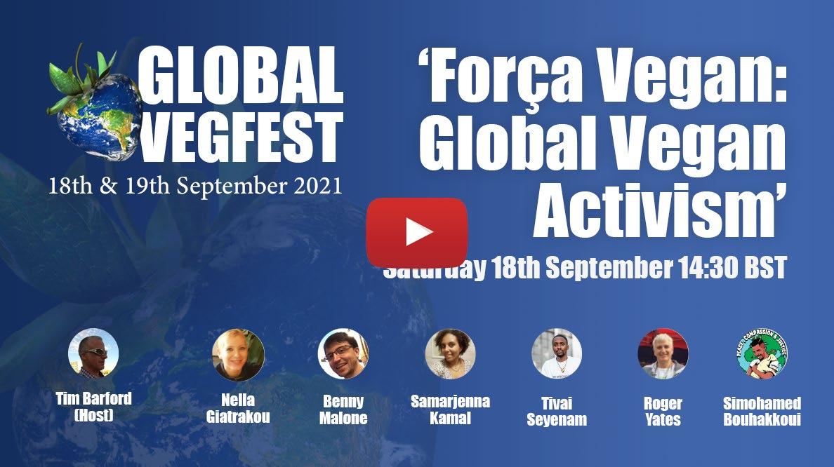 It’s a real honour to bring to you a whole line-up of fabulous talks and panels focusing on veganism, activism and plant based lifestyles, from some of the most influential and inspirational vegan voices on the planet. The content is free, online, and available anywhere with an internet connection, before during and after the event, and you are welcome to share and engage wherever you like. All the panel are available to watch after the weekend, and you will find them all in this handy event programme! There’s also a wonderful vibrant online vegan Marketplace where you can find out more about some excellent vegan business- es, services and initiatives, and in addition you can find some news of Global Vegfest 2, which will be hosted online on December 18th & 19th 2021, and there’s a roundup of our first 2 issues of Plant powered Planet and Força Vegan online Magazines too. Enjoy!