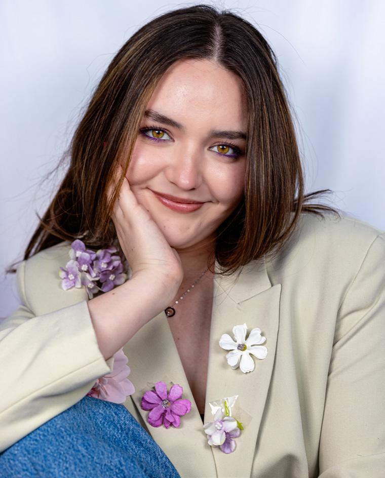 con esa inteligencia que no presume: observa, conecta, pregunta. Isabella Aceves tiene 21 años, es Libra, estudia Teatro Musical y Psicología, y habla como piensa: rápido y sin fingir solemnidad. “Me gusta mucho leer,” me dice, “pero me cuesta trabajo mantener mi lectura.” Prefiere series cortas, no es de ver películas populares; de hecho, confiesa que ha visto las mismas cinco películas toda su vida. Y aun así, o quizá por eso, tiene una forma muy particular de mirar el mundo: con una mezcla de crudeza, ternura y un sentido de análisis que se nota incluso cuando se está burlando de sí misma. En esta edición, Isabela no vino a dar respuestas perfectas. Vino a decir la verdad: la que se contradice, la que se reformula, la que aprende. Y eso, en un mundo donde todos quieren llegar “ya”, se siente como un acto de valentía. Cuando le pregunto qué significa florecer, Isabela no se va por lo fácil. No lo confunde con éxito, no lo viste de logro, no lo reduce a tener “más”. Lo dice como si le molestara que el mundo lo haya simplificado: Para ella, florecer es crecimiento personal, y el resto llega después. “No siempre tener más significa ser mejor…
