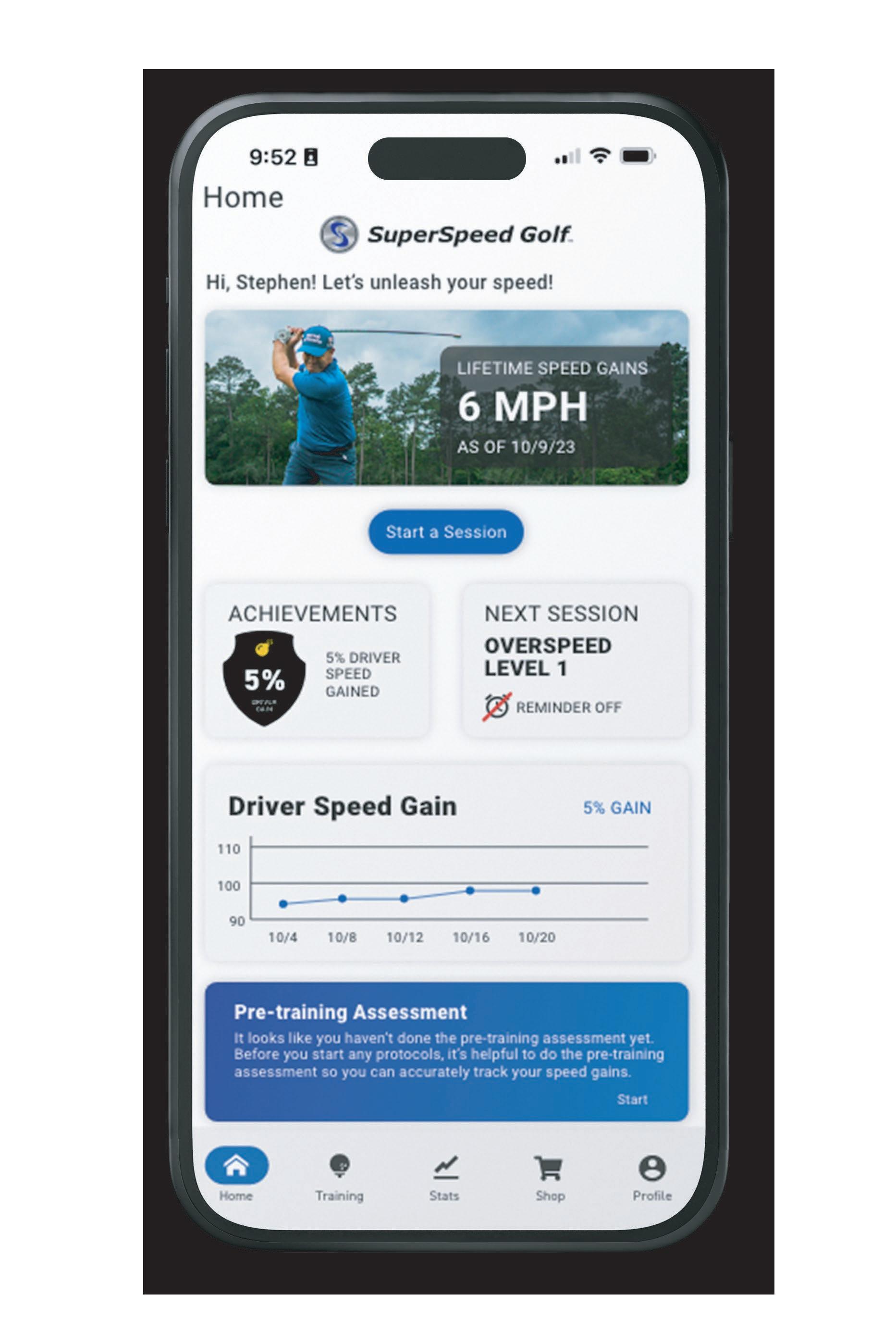 The SuperSpeed Squeeze fits over the grip of your club or SuperSpeed club and uses our training protocol videos to help players increase grip strength and gain more speed.