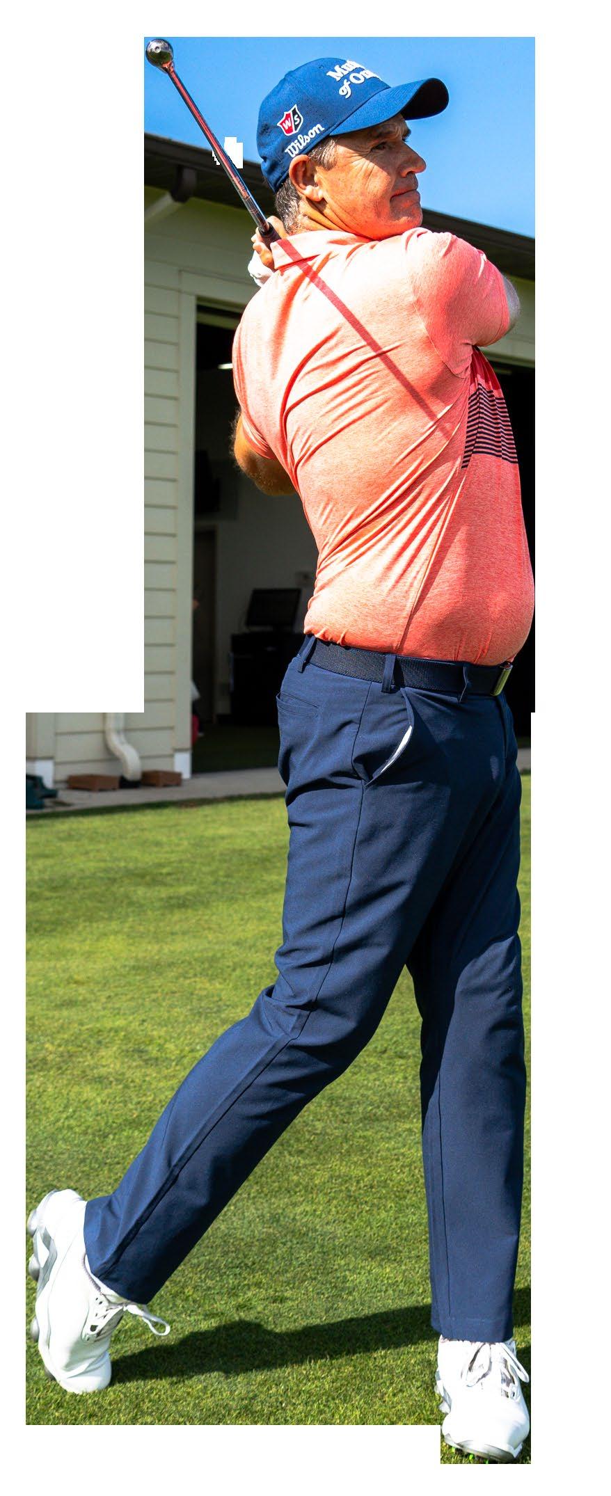 C stands for counterweight. By moving mass behind the player's hands, we are able to reduce the resistance of the club head releasing around impact, helping the golfer to train maximum arm/hand and release speed in their golf swing.