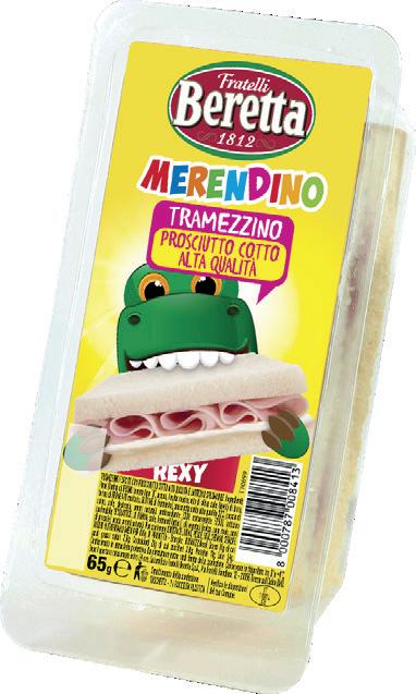 Caratterizzata da un packaging color giallo brillante e dalla mascotte Rexy, il simpatico dinosauro amico del Gruppo Beretta, la linea Merendino risponde alle esigenze nutrizionali dei bambini, con prodotti buoni e appetitosi e formati studiati per garantire l’apporto calorico ed energetico necessario per supportare la crescita dei giovanissimi.
