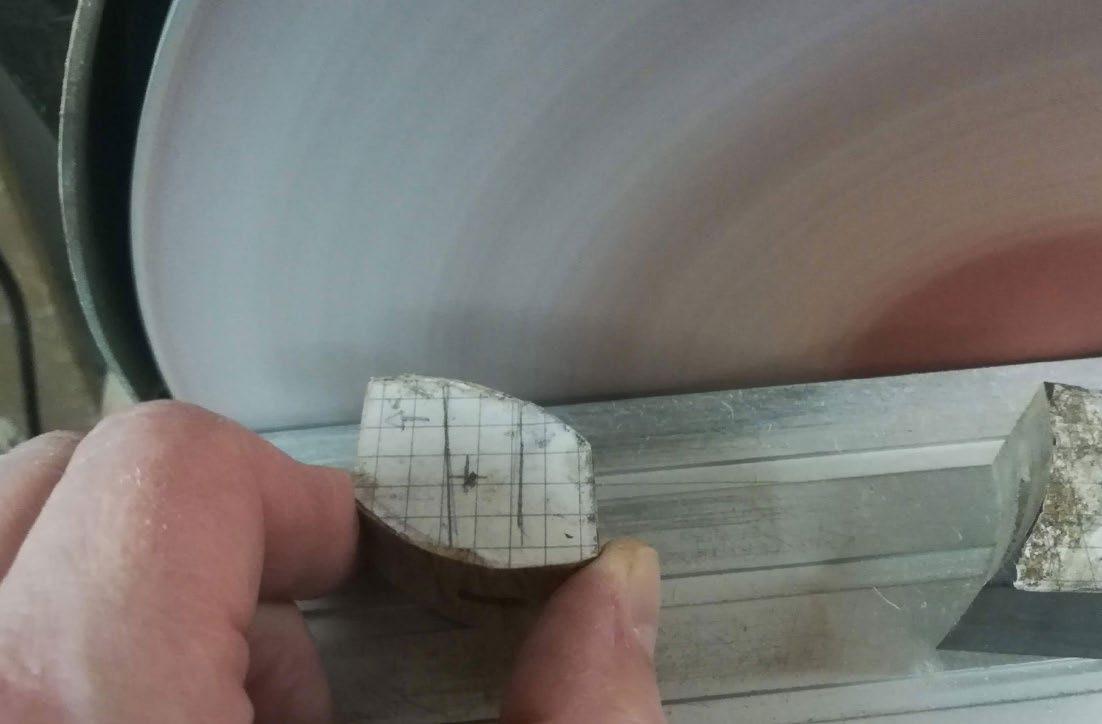 DEN UDVENDIGE KURVE SLIBER DU PÅ TALLERKENSLIBEREN. DET KAN VÆRE ET LANGSOMMELIGT ARBEJDE OG DU SKAL KUN TAGE EN LILLE DEL AD GANGEN.
